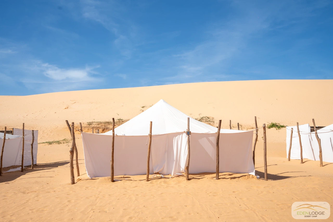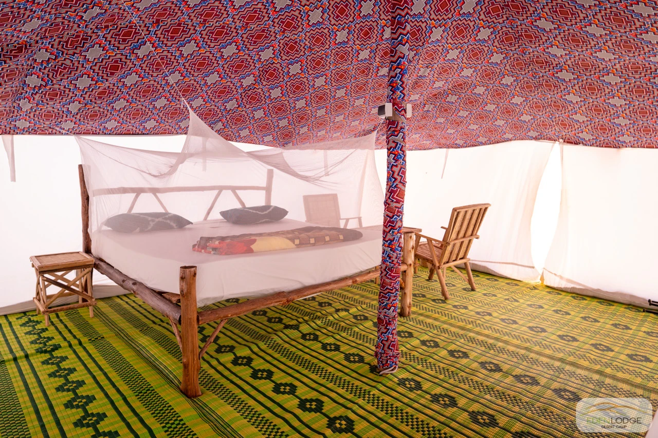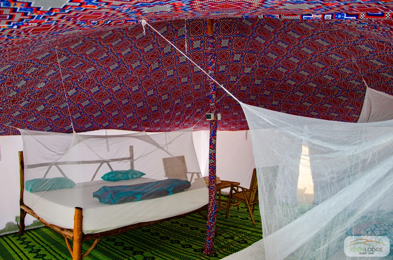 Les nouvelles tentes de 6m x 6m ont été entièrement conçues et fabriquées sur place, à la main, pour s’harmoniser parfaitement avec la beauté des lieux et offrir un confort et une finition inégalés.