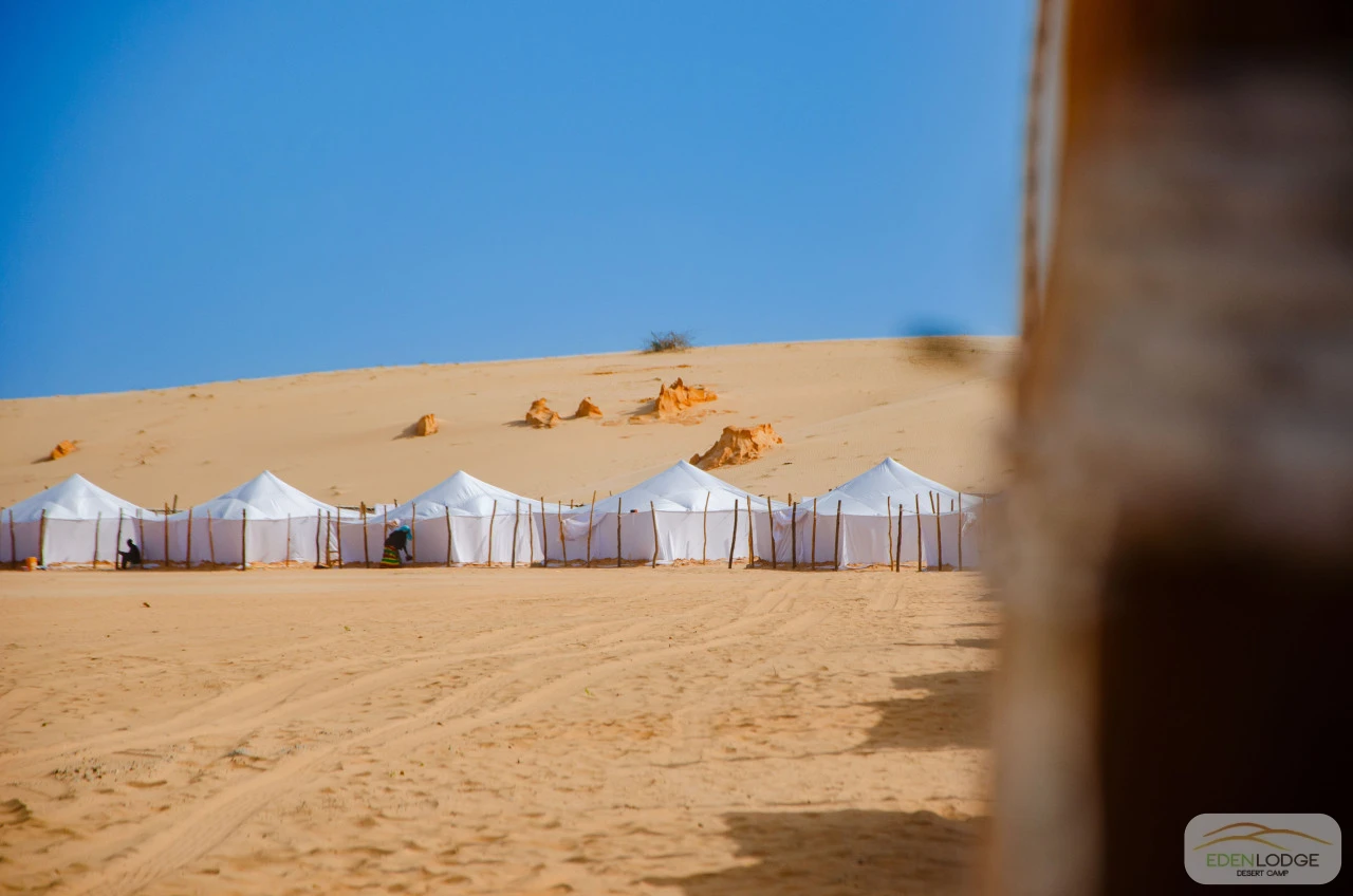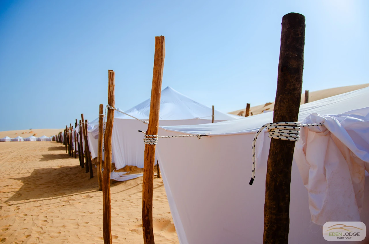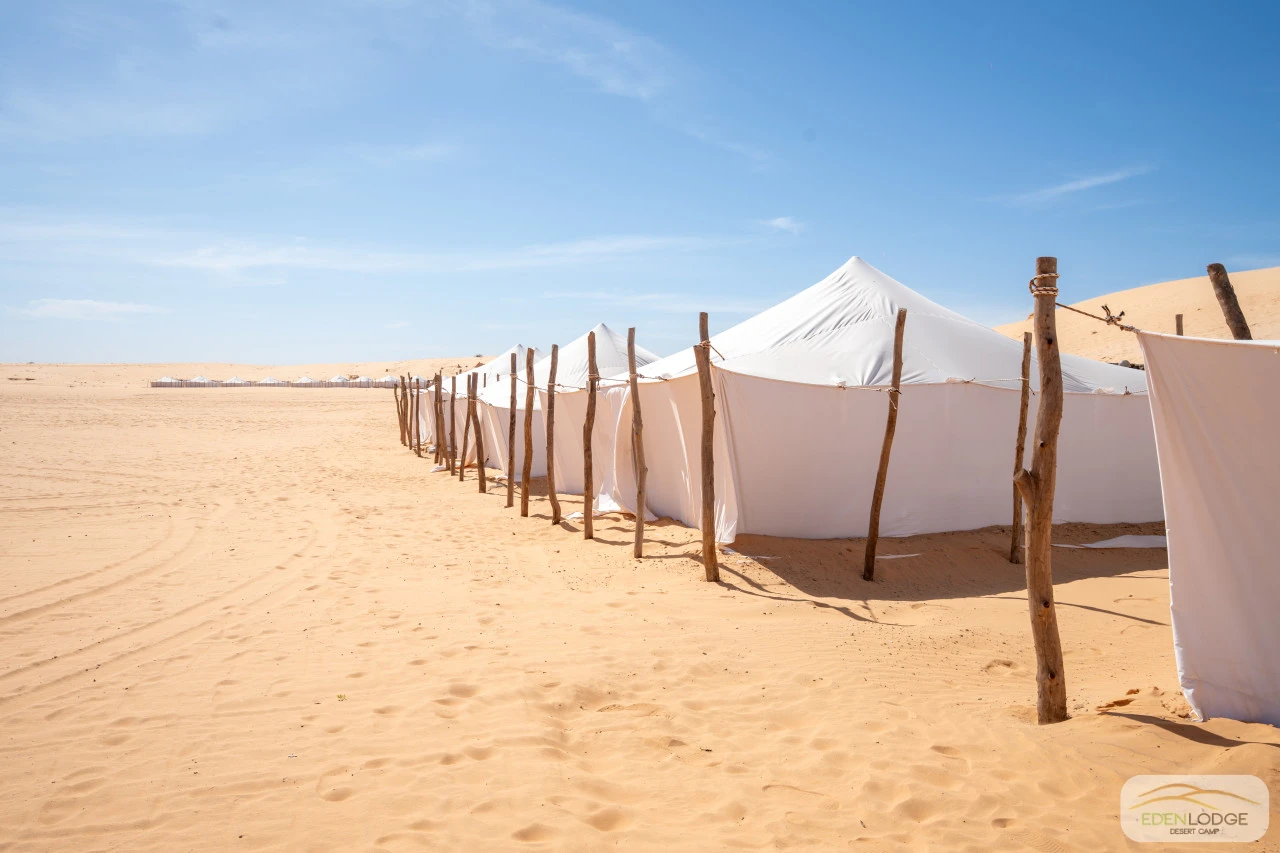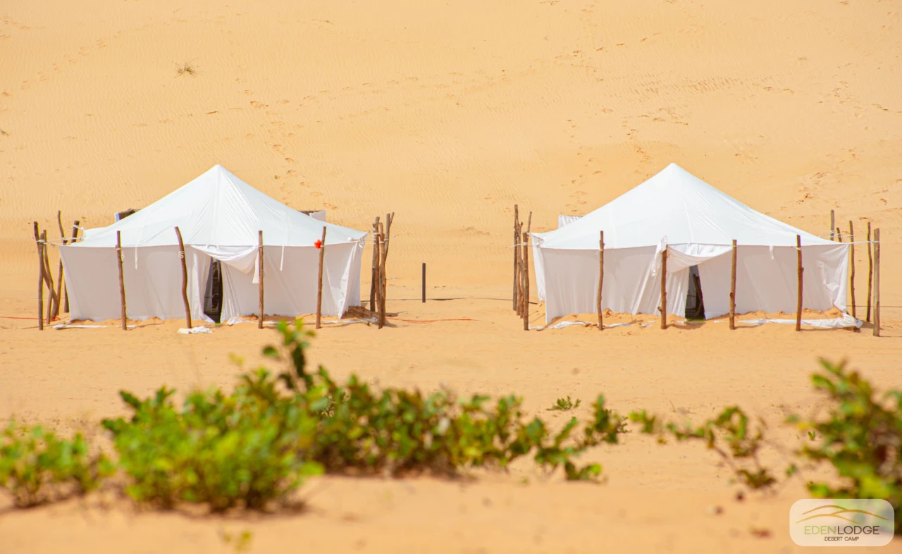 Les nouvelles tentes de 6m x 6m ont été entièrement conçues et fabriquées sur place, à la main, pour s’harmoniser parfaitement avec la beauté des lieux et offrir un confort et une finition inégalés.