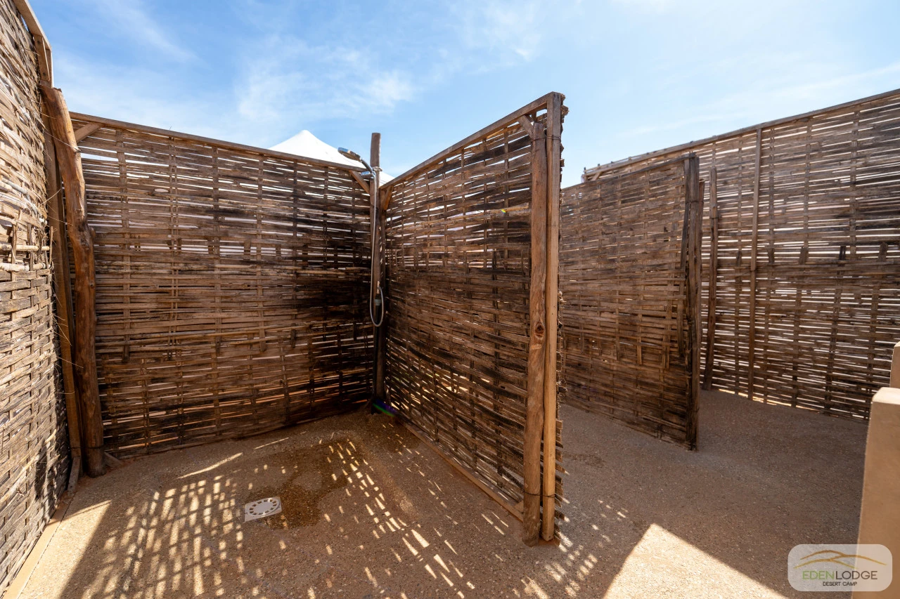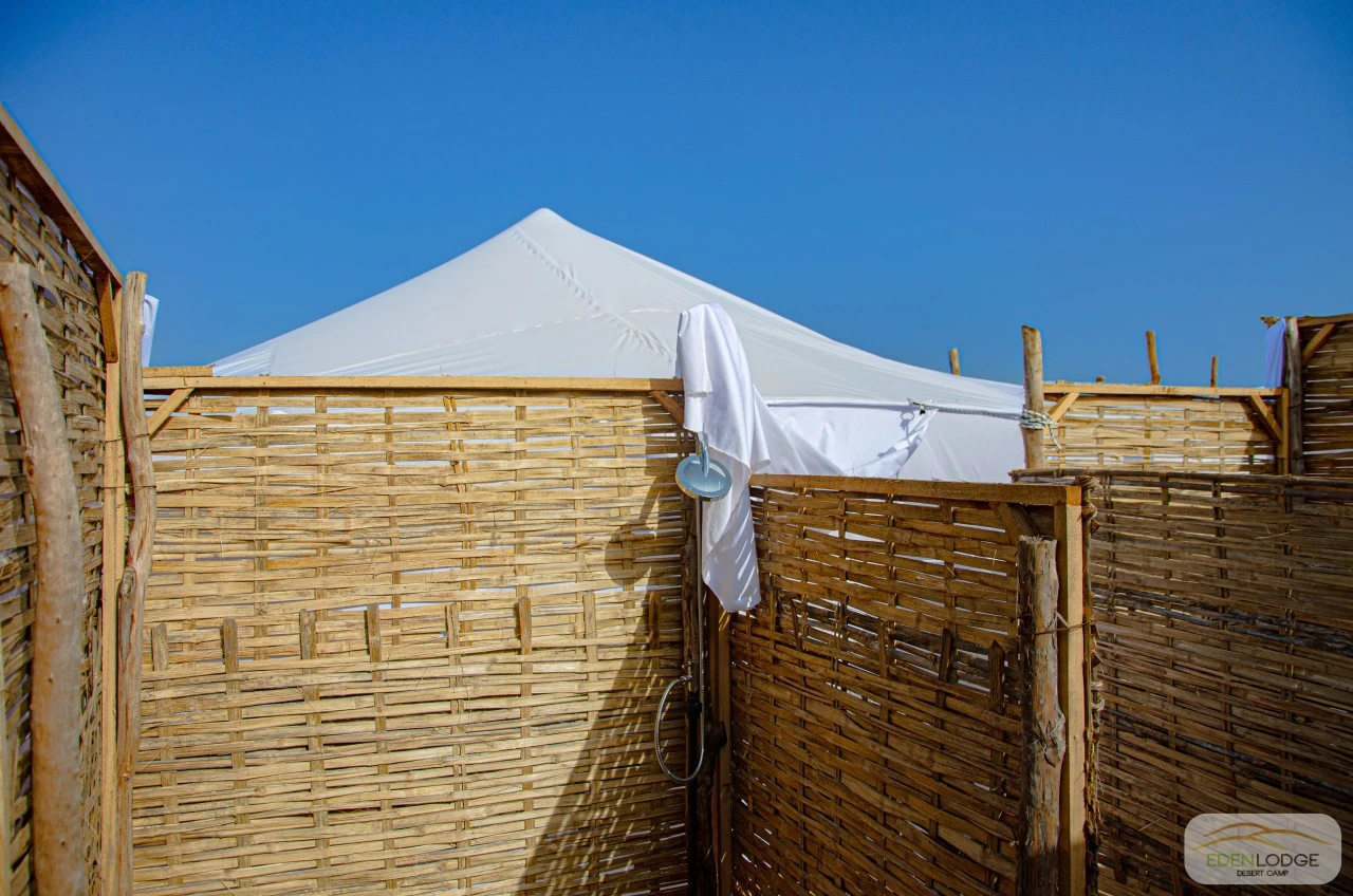 Chaque tente est équipée d’un lit double et d’un lit simple. Sur demande, elles peuvent être aménagées en tente familiale pouvant accueillir deux adultes et quatre enfants maximum. Chaque tente dispose également d’un espace WC-douche privatif.